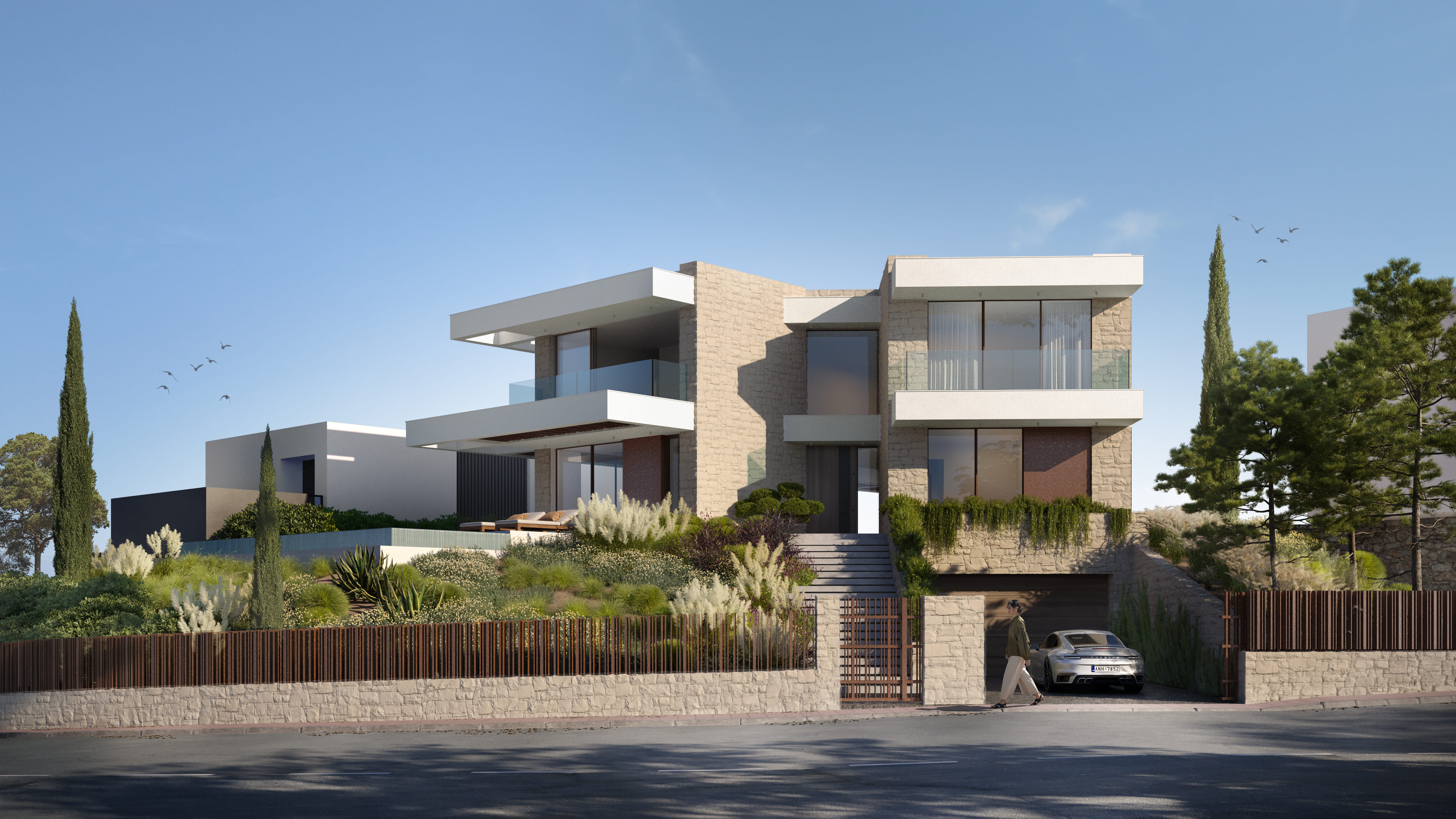 Спальня вражає своїм унікальним рішенням двоярусного простору, де верхній рівень відведений для зони рослин, що створює ефект тропічного саду в інтер’єрі. Основною особливістю є велика кількість живих рослин тропічного походження, які розташовані над ліжком. Всі елементи дизайну спальні виконані в світлих тонах, що створює спокійний фон і дозволяє зосередити увагу на природних матеріалах та яскравій зелені.